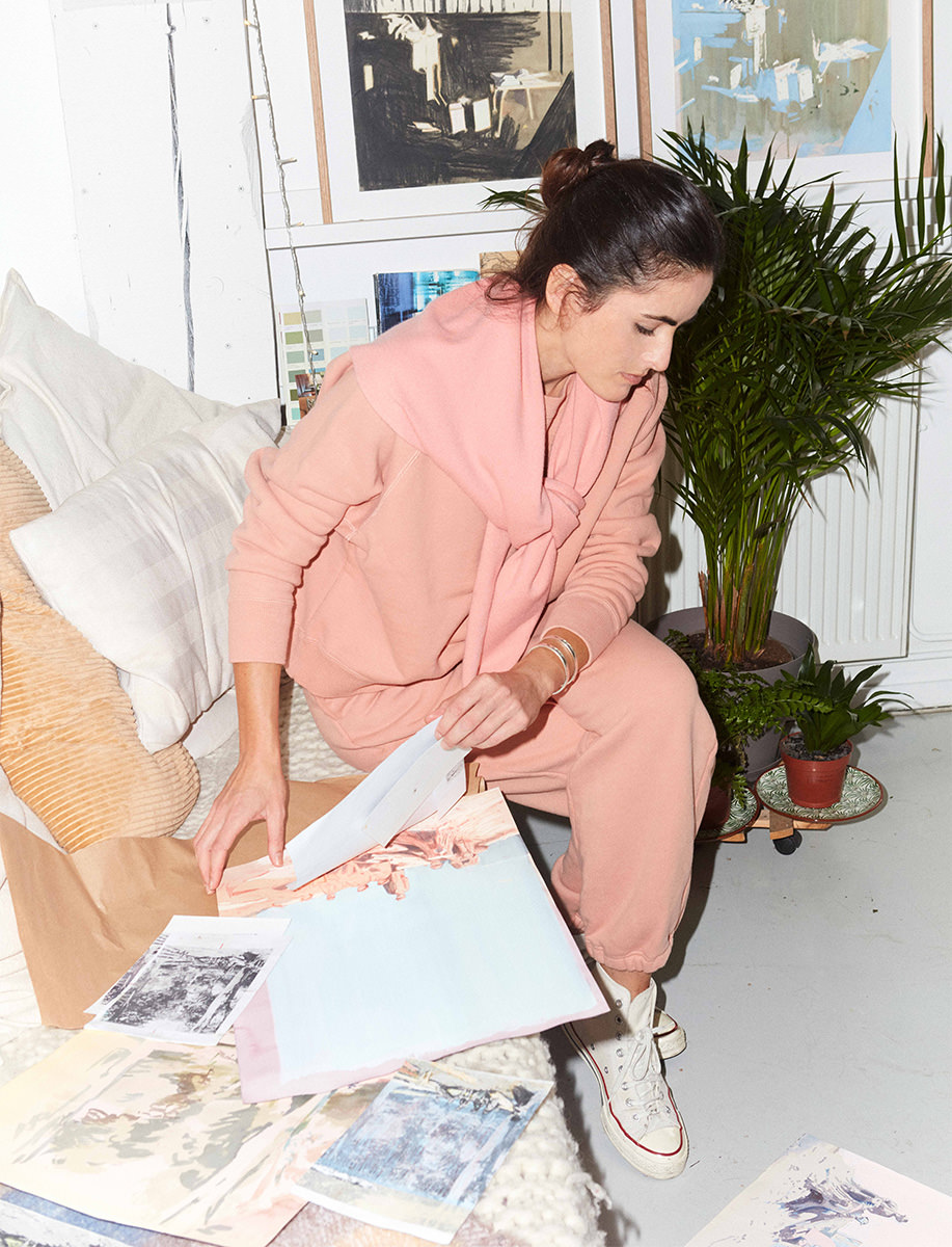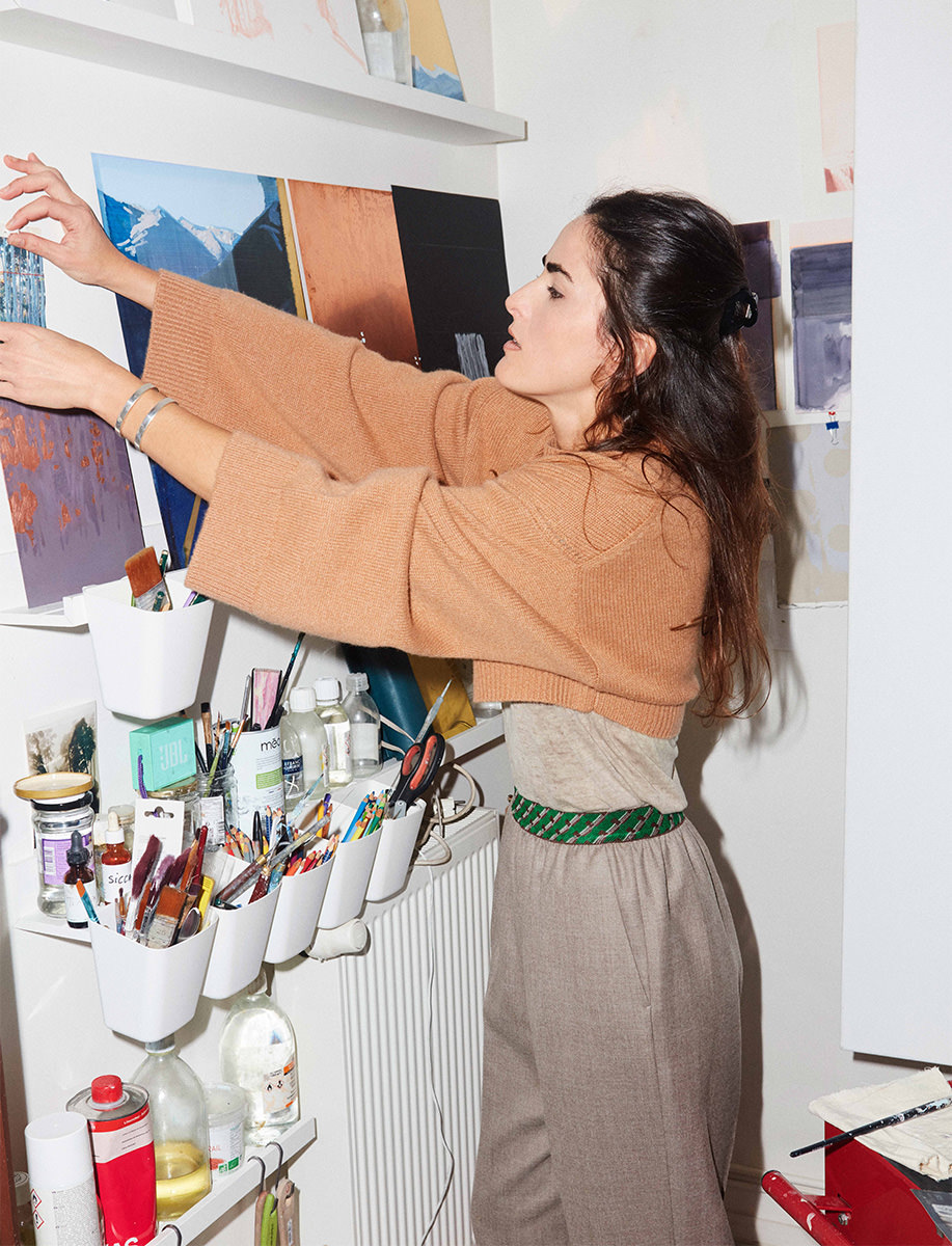 「引越ししたばかりで散らかってるけど……」とアトリエへ案内するアーティストのクリスチャン・プーレイ。チリに生まれ、ロンドンで勉強し、そして現在はパリ。<6>の名古屋店にも飾られている彼女の作品には、独特の色彩感覚に加え、心地よい具象と抽象のバランスがある。アトリエや近所の公園での撮影後に話を聞く。彼女のルーツであるチリの話や作品に対する思い、はたまたソーシャルメディアとの付き合い方までを。コーヒーとオレンジピール入りのトリュフチョコレートを口にしながら。