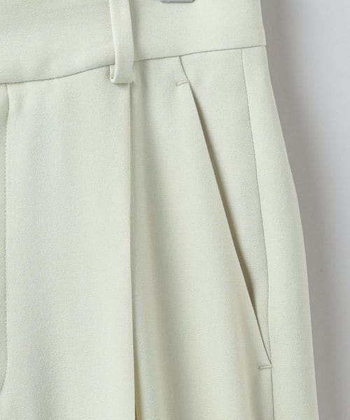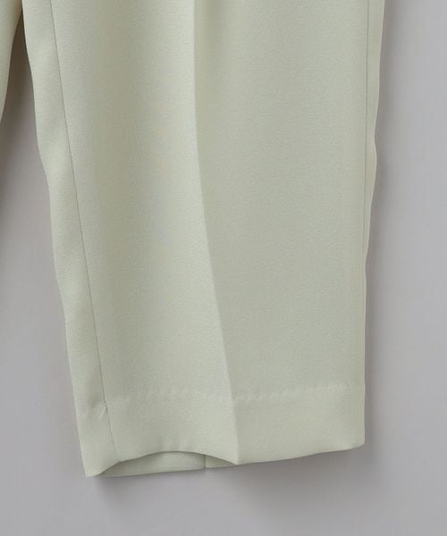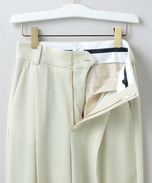 腰まわりにタックを施し、上品な印象の落ち感のある生地でお作りし、裾に向かって細くなるテーパードシルエットですっきりとした着こなしが叶います。