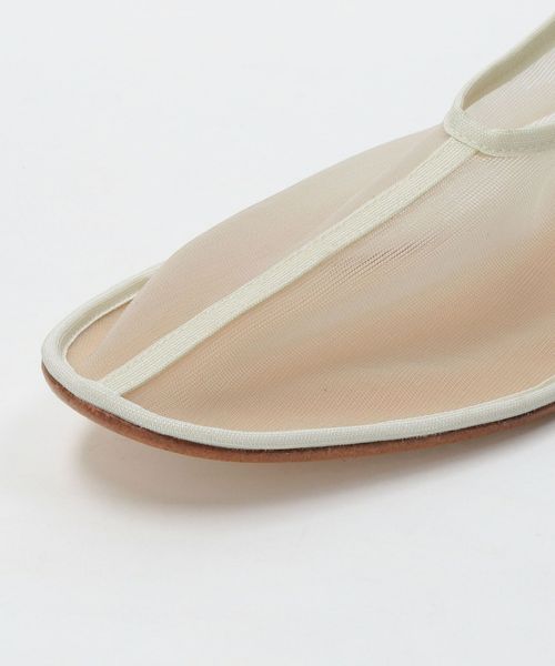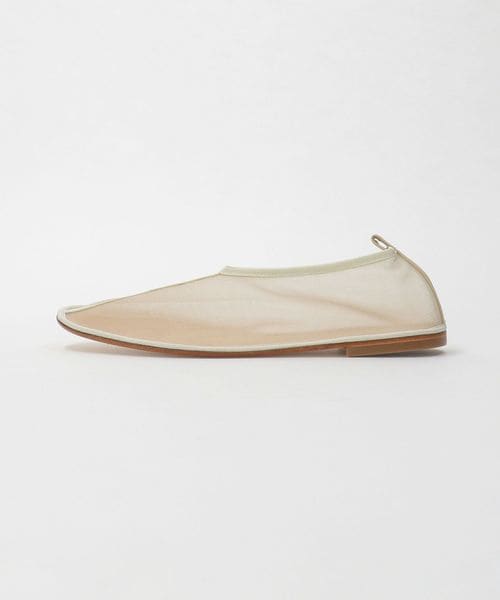素足のネイルやソックスが透け、涼し気な雰囲気で着こなしを昇華します。