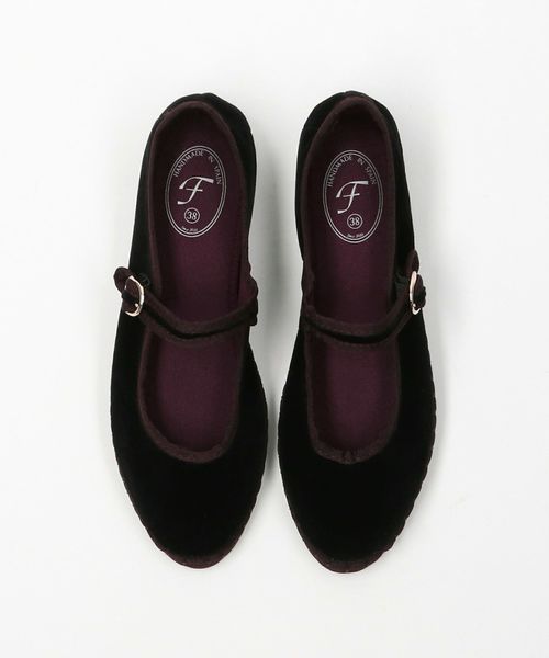 足の甲にストラップがアクセントのメリージェーン型シューズ。