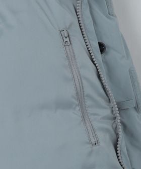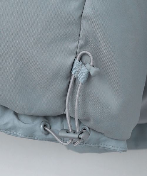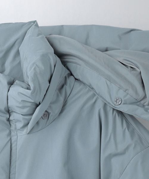 なめらかな手触りと品のよい光沢のあるナイロンテキスタイルを使用したダウンジャケット。