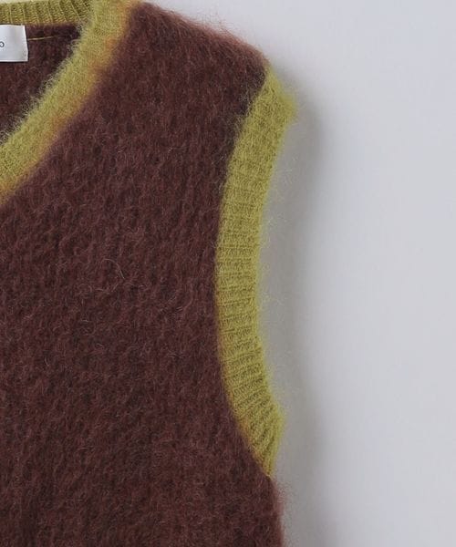 毛足感のあるやわらかい風合いのモヘヤブレンドのニットベスト。