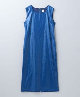 ビニールのような質感と艶感のある独特な生地を使用したノースリーブワンピース。