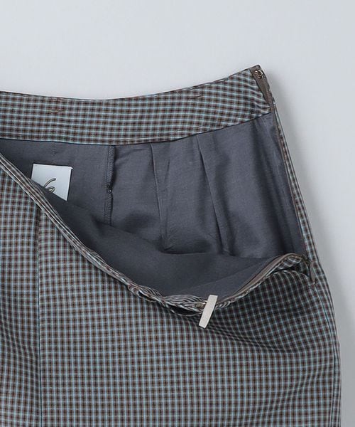 ライトブルーとブラウンのクラシックなチェック生地を使用したマキシスカート。