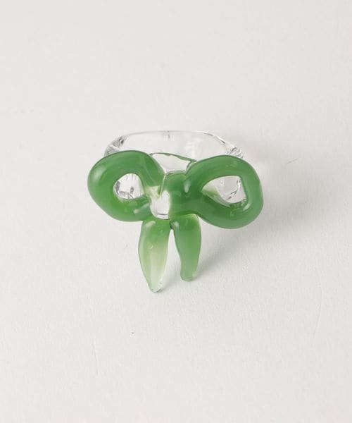 クリアで透明感のあるガラスを使用したリボンモチーフのリング。