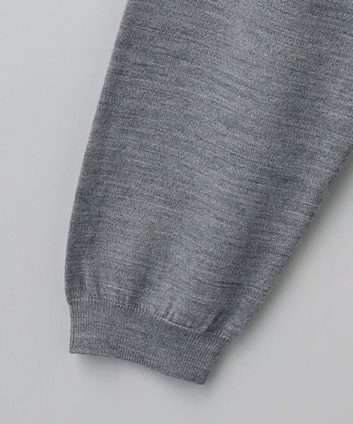 なめらかなウールの梳毛糸を使用してハイゲージで編みたてたニット。