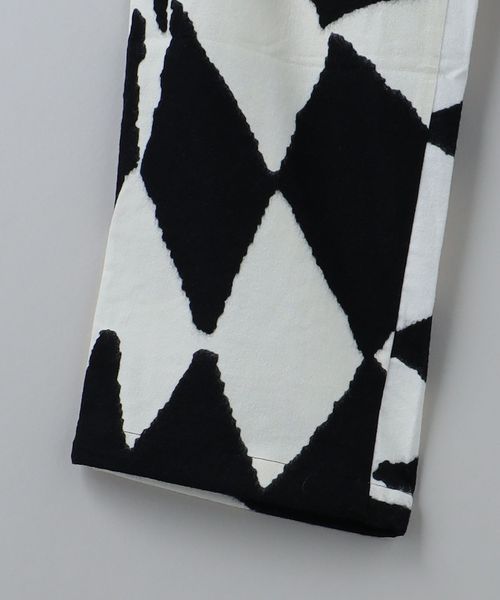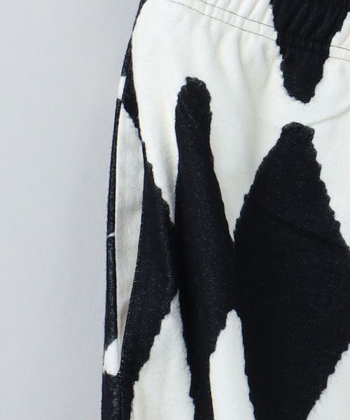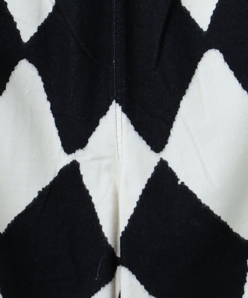 白黒チェック柄がインパクトを放つ、レーヨンコットン混のフランネル生地を使用したイージーパンツ。