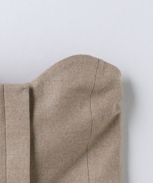 胸のカットが特徴の、TOP糸を使用した表情のある霜降り状の生地を使用したビスチェ。