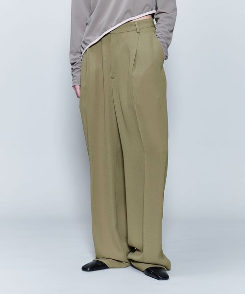 腰まわりのタックが抜け感を演出しながらも、ハイウエストや落ち感のある生地感ですっきりとした上品な印象に。