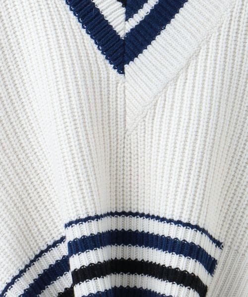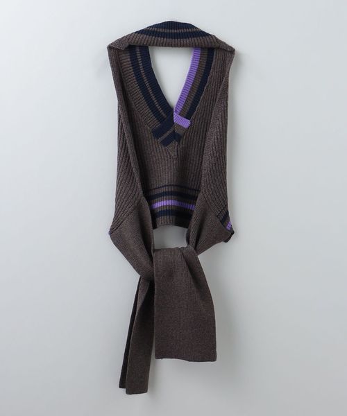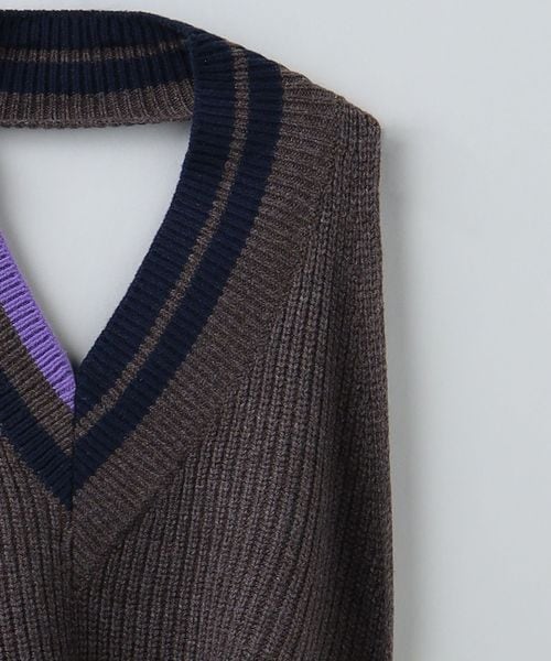 ネックと裾のラインがアクセントになった、イギリスの伝統的なクリケットニットを現代的にデザインしたベスト型ホルターネック。