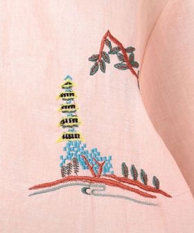 <dahl'ia>に別注した、シアーな生地に刺繍を全面に施したチャイナモチーフシャツ。