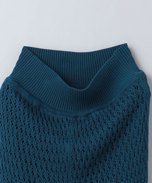 コットン糸で編み立てた、編み柄が特徴のニットパンツ。