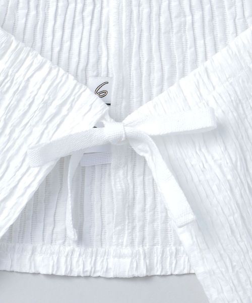 エリのようにフロントで紐を結んだり、紐を垂らして羽織りのようにしたり、ウエスト部分につけてラップスカートのように、様々なアレンジもお楽しみいただけます。