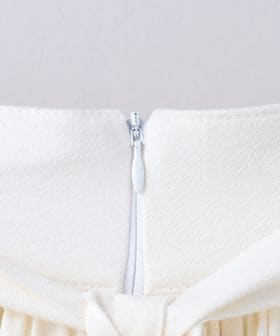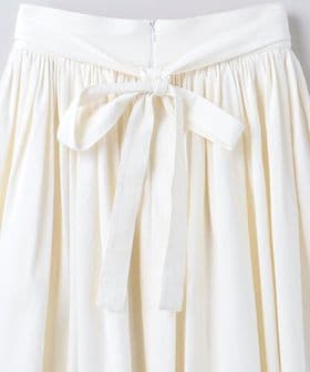 縫われているリボンベルトを結んで、ウエストを微調整可能。