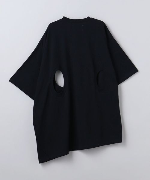 ホールが開いた斬新なデザインを取り入れたTシャツ。