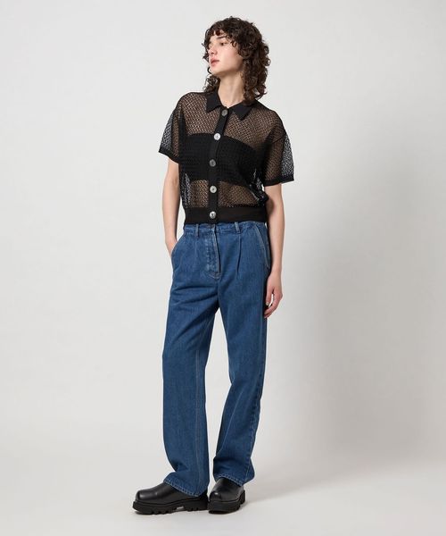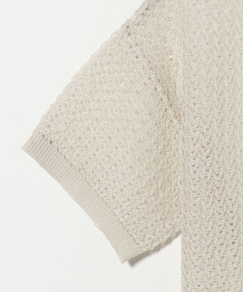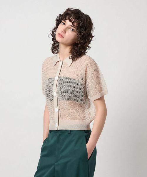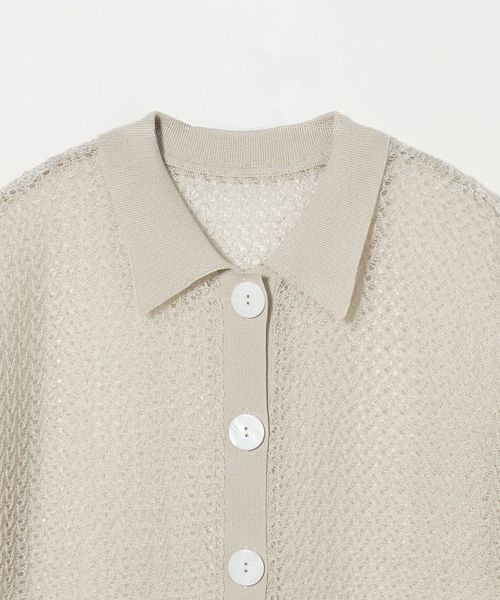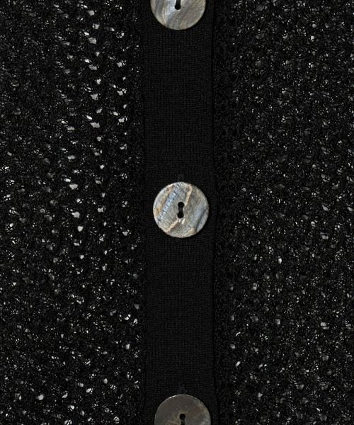 凹凸のある糸を使用した透かし編みの襟付きカーディガン。