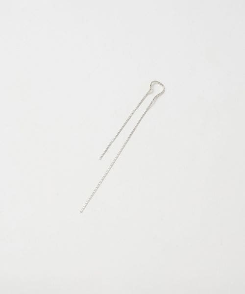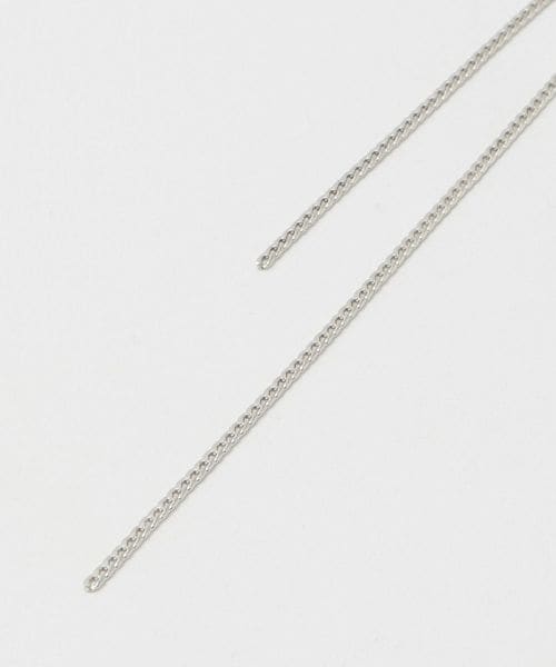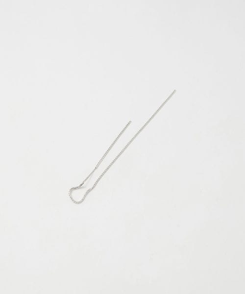 なめらかでしなやかなシルバーチェーンが、耳の前から後ろ、そして肩へと流れ落ちます。