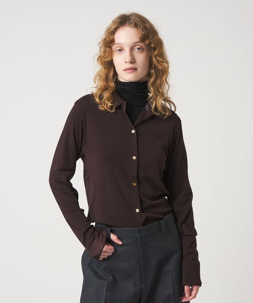 ほどよくフィットするきれいめなシルエットで、ボタンを留めて一枚着やジャケットのインナーなど、着こなしの幅が広がります。