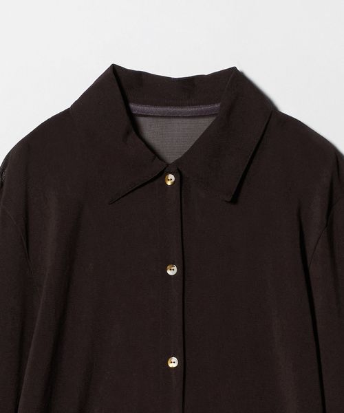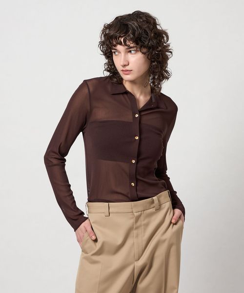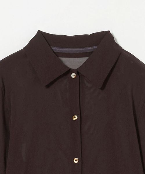 シアーな透け感のあるチュール素材が軽やかな雰囲気に仕上げてくれるシャツ型カーディガン。