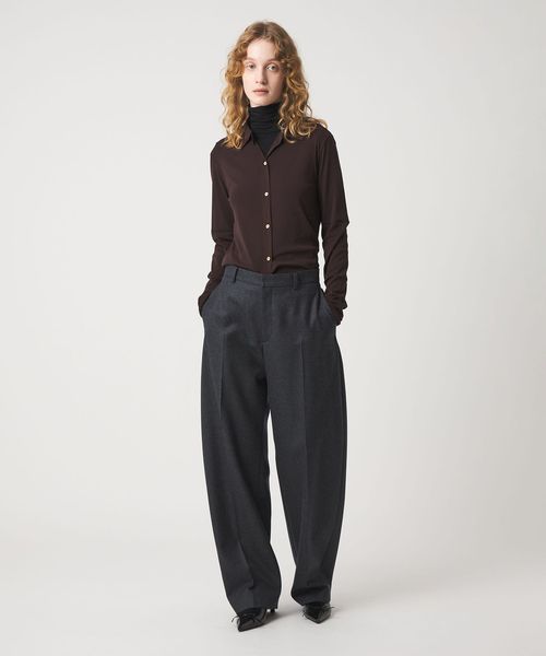 ほどよくフィットするきれいめなシルエットで、ボタンを留めて一枚着やジャケットのインナーなど、着こなしの幅が広がります。