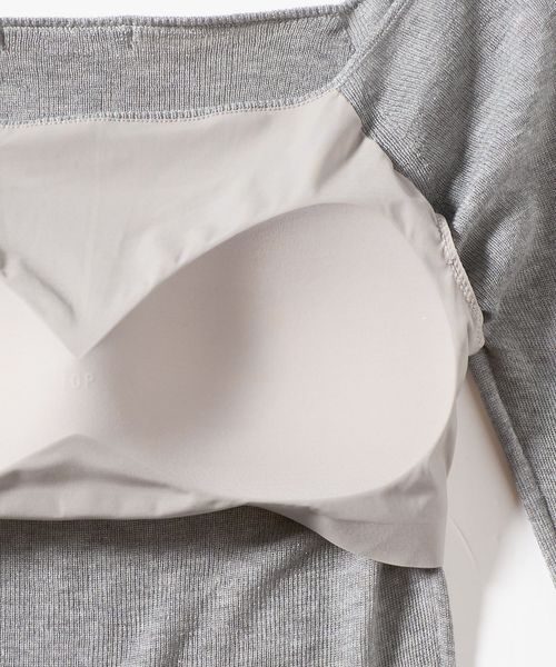 着心地や、女性を輝かせるデザイン性を持つニットウェアと、高度な技術力を持つ下着製造メーカーにより専用開発されたエアリーな着け心地のブラカップ。