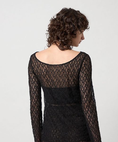 繊細でフェミニンな雰囲気のレースチュール生地を使用したプルオーバートップス。