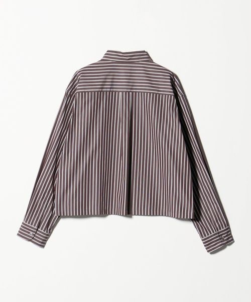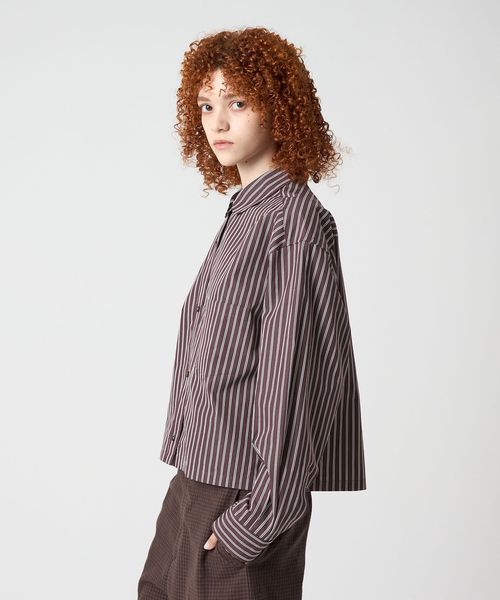 <6(ROKU)>ブラウンストライプ ラウンドカラーシャツ