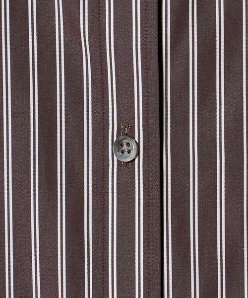 クラシックな印象のブラウンストライプ生地で仕立てたシャツ。