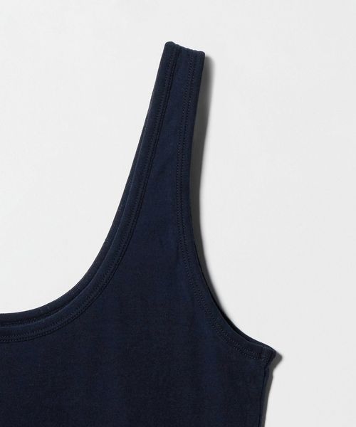 デコルテラインを美しくみせるUネックデザインのタンクトップ。