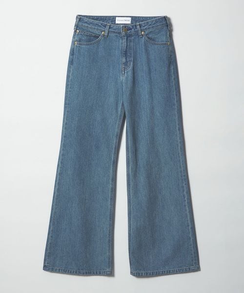 女性のボディラインを魅力的に見せることに配慮した、フレアシルエットのデニムパンツ。