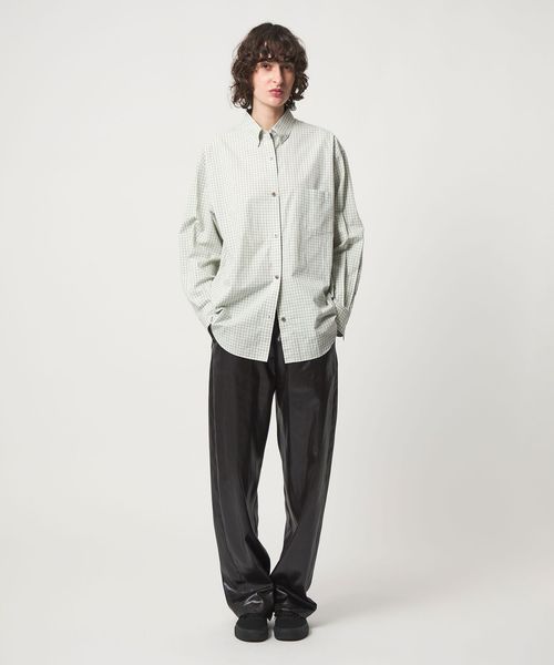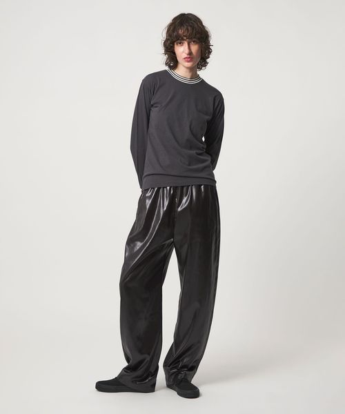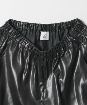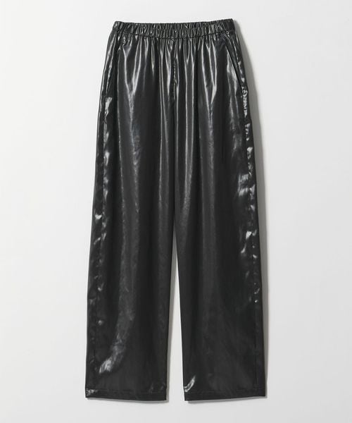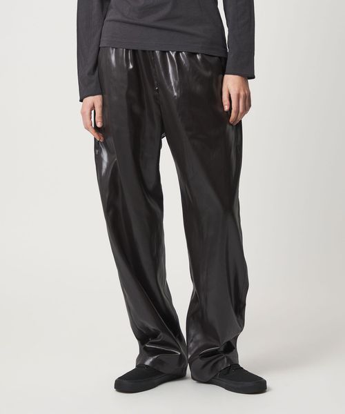 ビニールのような質感とレザーライクな艶感のある独特な生地を使用したイージーパンツ。
