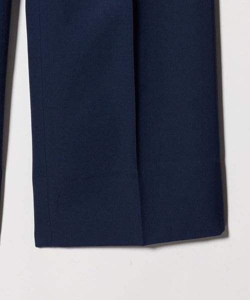 ペーパー加工を施したハリと落ち感が絶妙なウール100%のギャバジン生地を採用。
