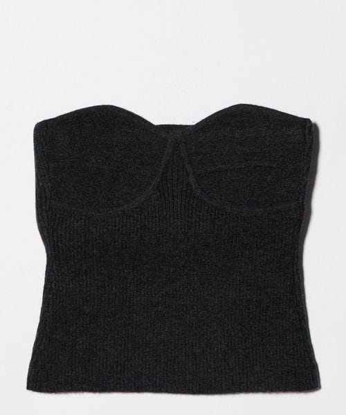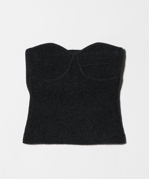 ウールに少量のナイロンとカシミヤをブレンドしたやわらかい風合いのニットビスチェ。