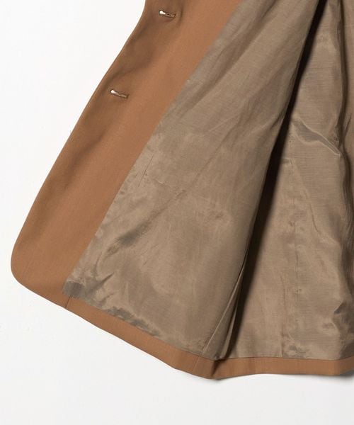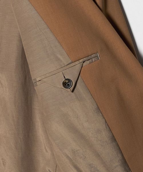 落ち感と加工でハリ感を加えた独特な風合いとベージュカラーが目を引く生地で仕立てたジャケット。