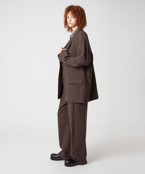 マニッシュな輪郭がセンシュアルな雰囲気に変化し、強さと艶感が共存するスタイルに導くこだわりの一着。