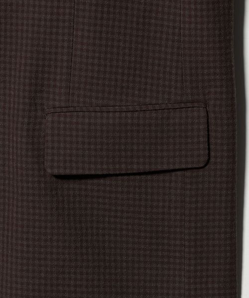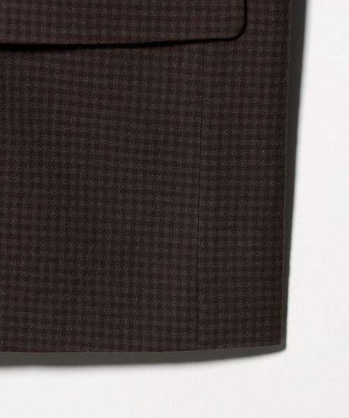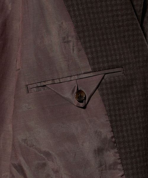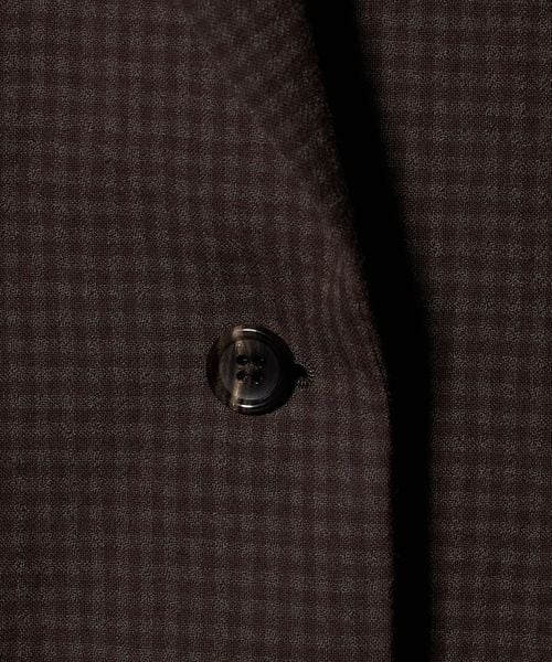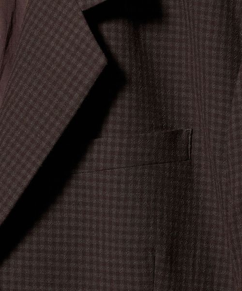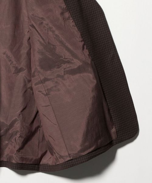毛とコットンの収縮差で凹凸を出した、レトロシックで表情のあるブラウンチェック生地で仕立てたジャケット。