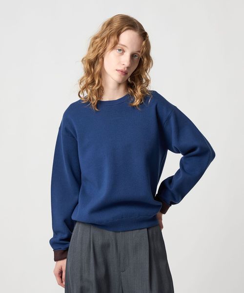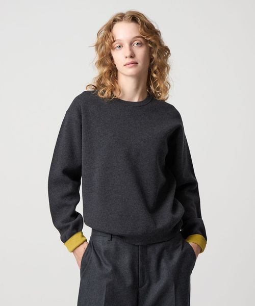 コットン×ウールをハイゲージで丁寧に編み上げたクルーネックニット。