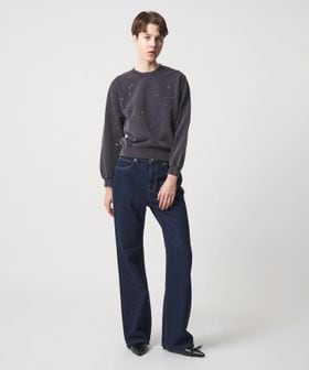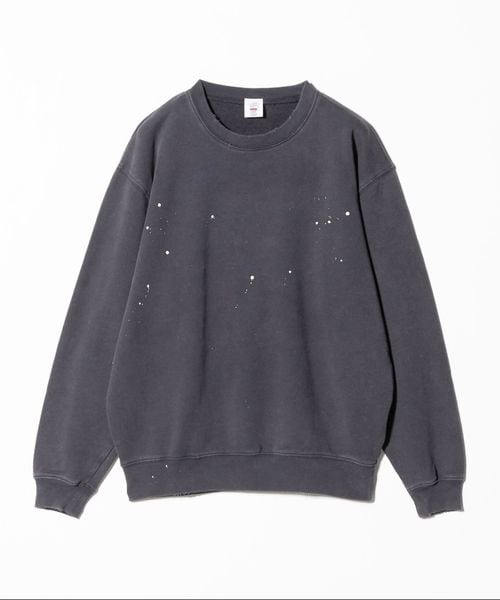 なじんだような風合いやペイントなど、独特の味わいを表現する加工を施したスウェットプルオーバー。