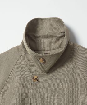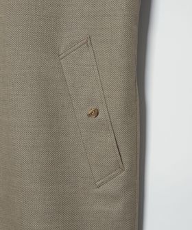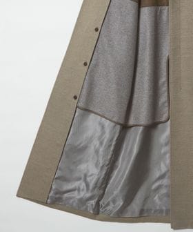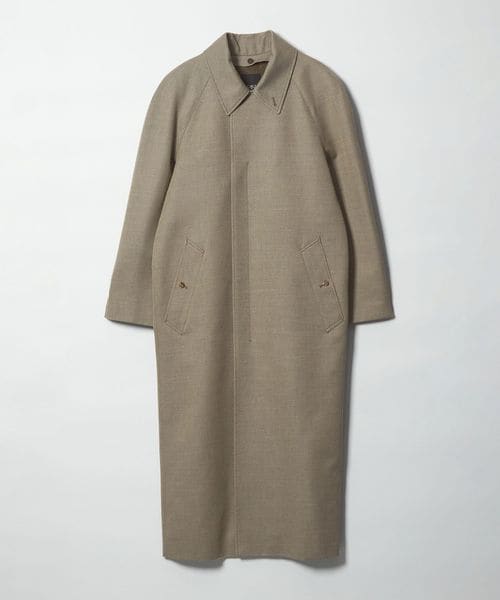 ステンカラーコートをベースに、肩から袖にかけてのフォルムはやや丸みとオーバーサイズ気味でありながらマキシロング丈がシックでモダンな要素を強調します。