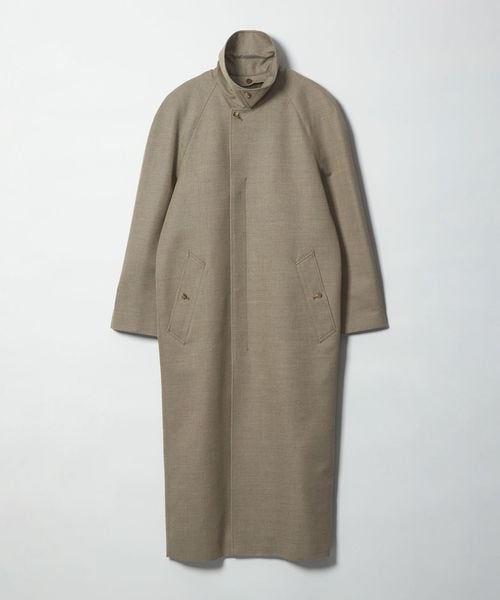 ステンカラーコートをベースに、肩から袖にかけてのフォルムはやや丸みとオーバーサイズ気味でありながらマキシロング丈がシックでモダンな要素を強調します。