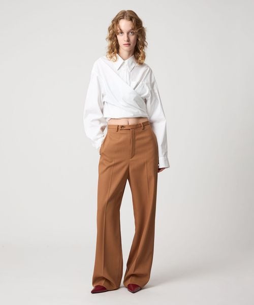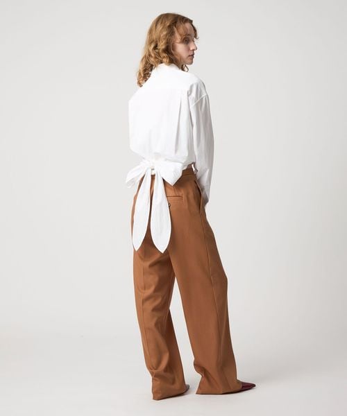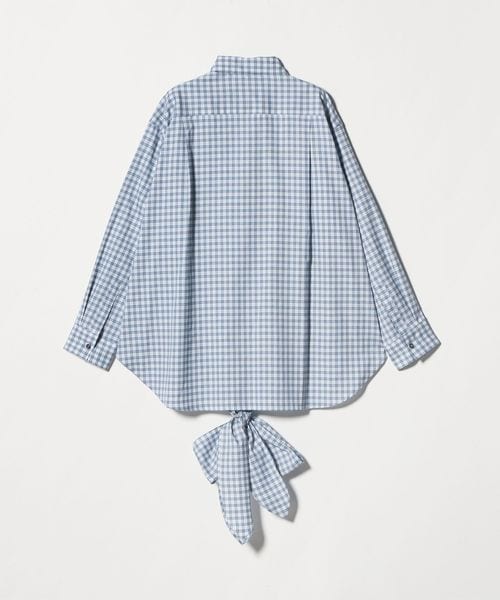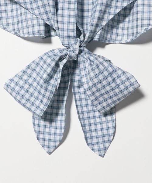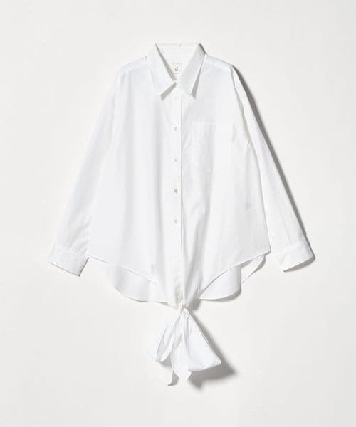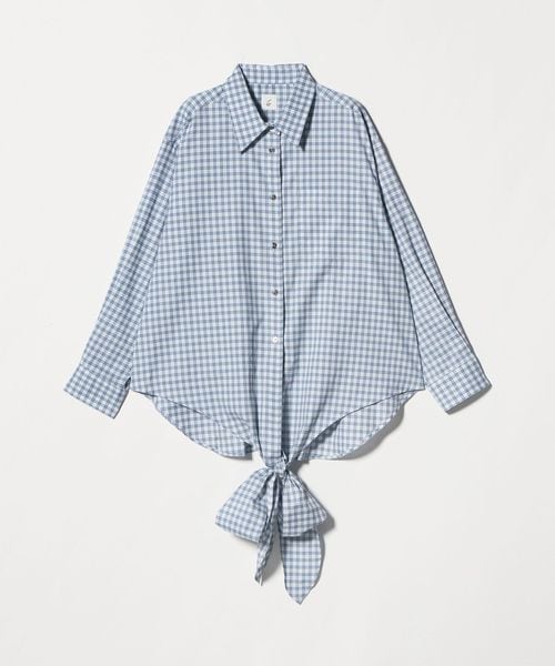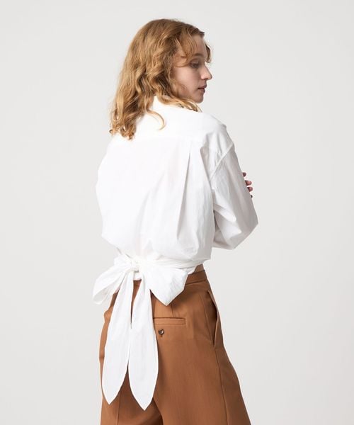 フロントの長い裾をカシュクールに結ぶデザインのシャツ。