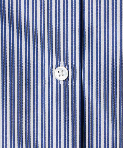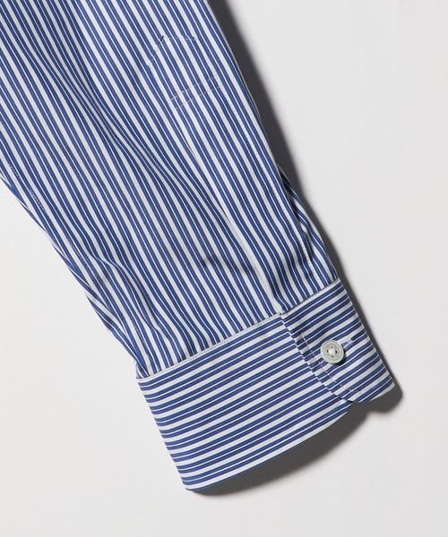 クラシックな印象のストライプ柄コットン生地を使用した、旬なショート丈デザインシャツ。