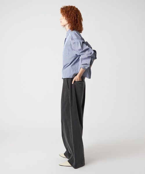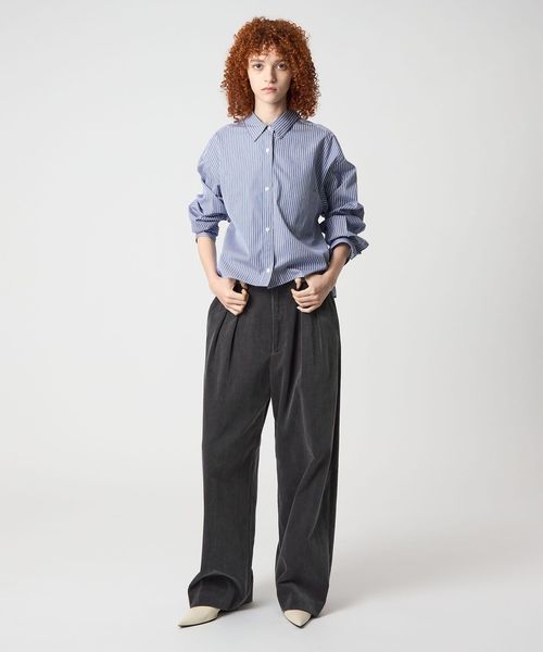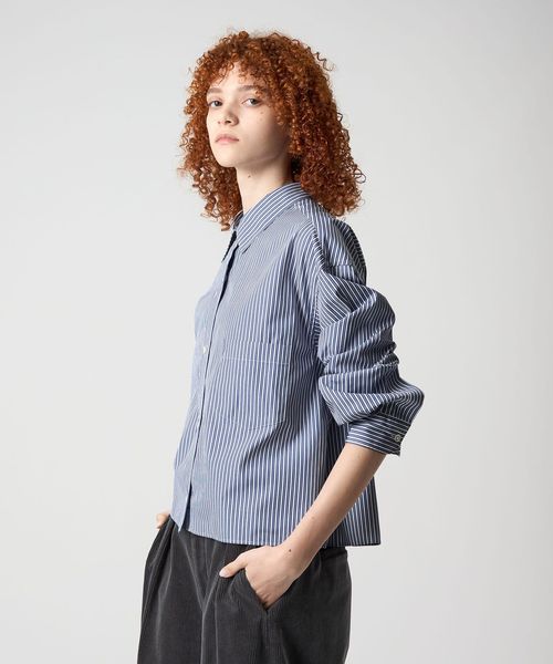 <6(ROKU)>コットン ストライプ クロップド シャツ