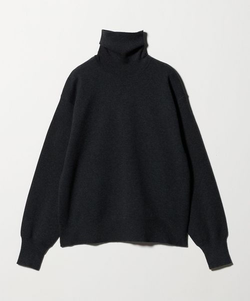 コットンウール混のハイゲージで丁寧に編み上げたタートルニット。