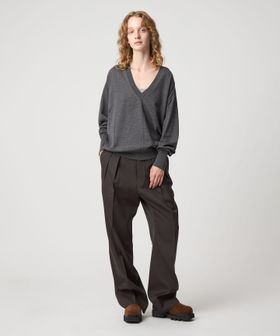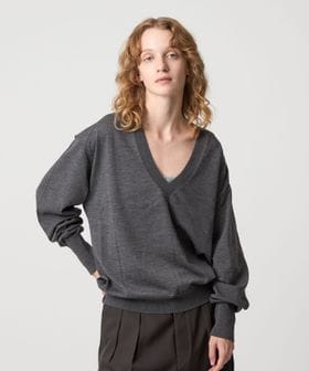 こちらのプルオーバーは、そのまま一枚で着てもさまになるよう潔く幅を狭めにし深い胸元の開きにこだわったシャープな印象の深いVネックデザインに。
