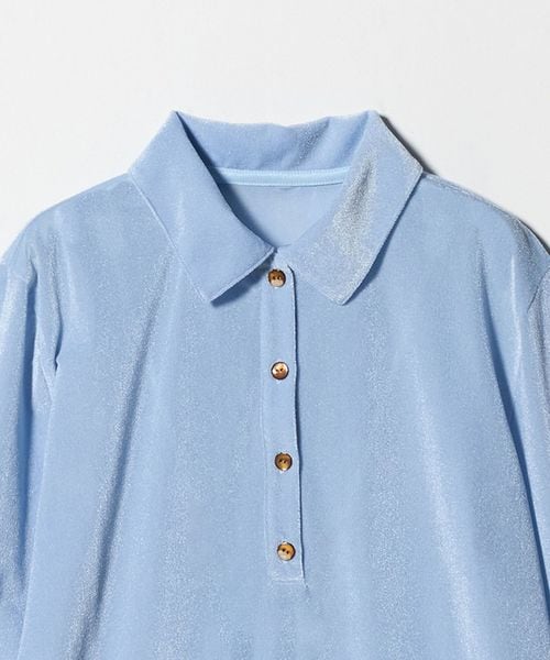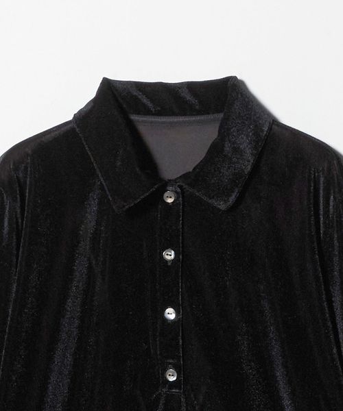 薄手のややシアー感のあるベロア生地でお作りしたポロシャツ型プルオーバートップス。