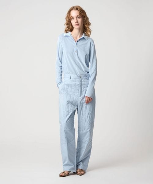 ボタンを上まで留めてモードにも、ボタンを外してラフにも印象が変わり、微光沢感が艶感と抜け感を演出し、大人らしいスタイルに導きます。