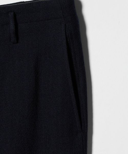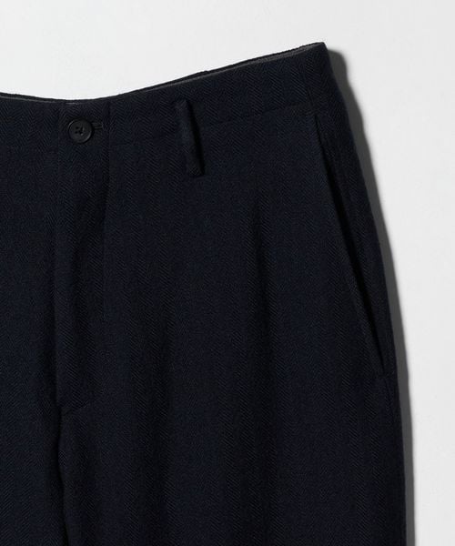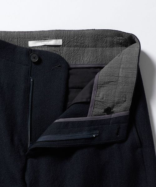 ヴィンテージ感を演出する粗野な雰囲気のヘリンボーン生地を使用したパンツ。