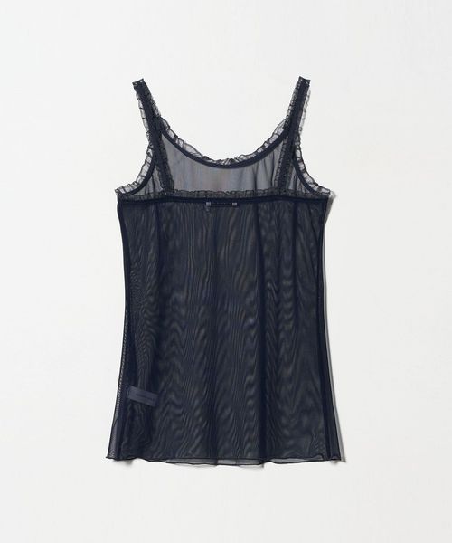 透け感のある軽やかな素材とフェミニンなフリルトリムが魅力的なキャミソール。