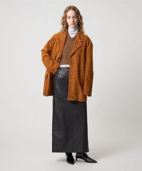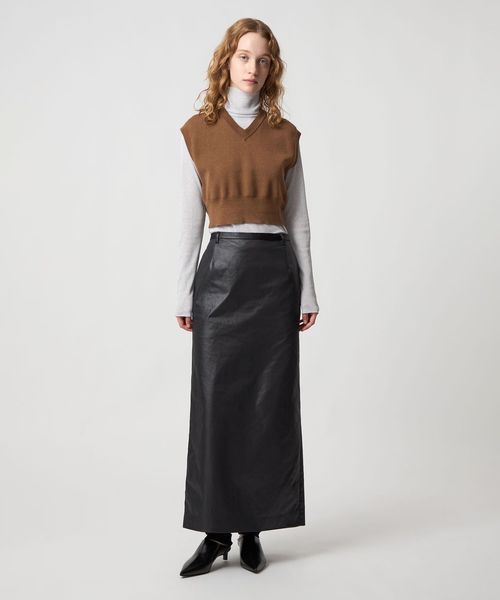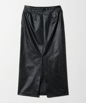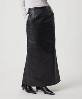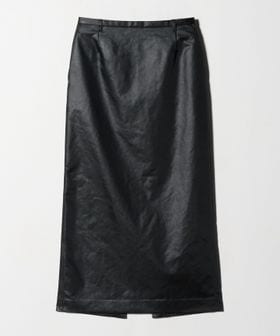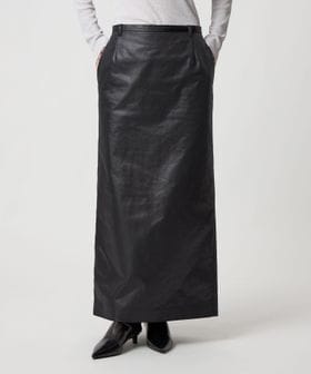 フェイクレザーライクなマットな艶感のある独特な生地を使用したマキシスカート。